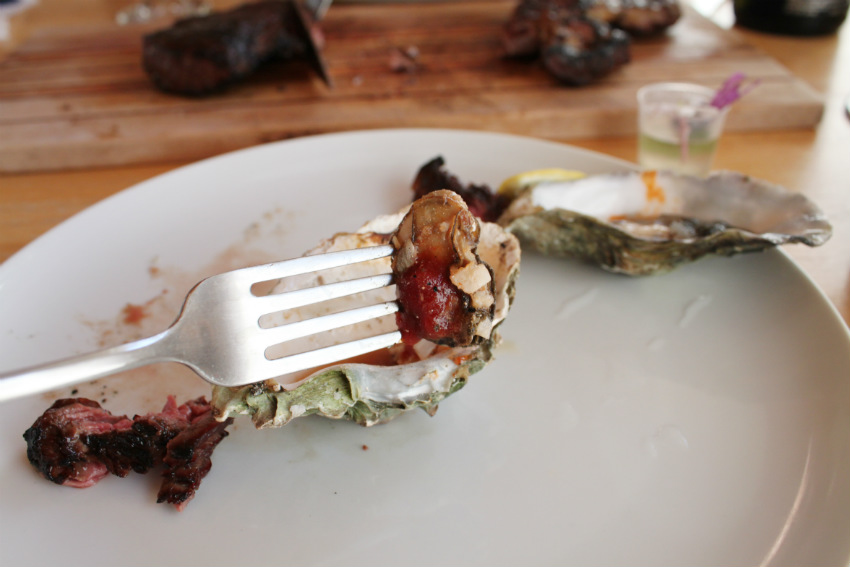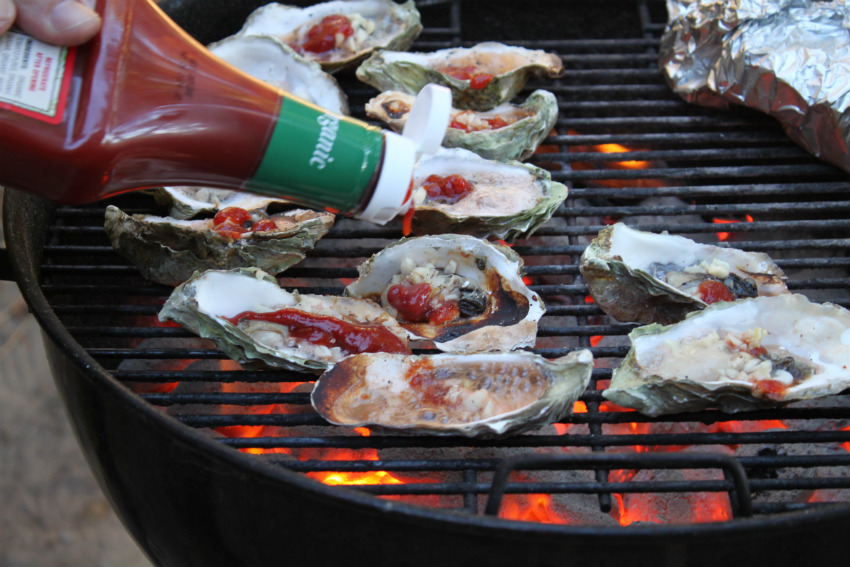 Hand off the oysters to your grill master to set over hot coals. We barbecued these right after grilling some meat, while it rested, so everything was ready to eat at the same time. Surf and turf!